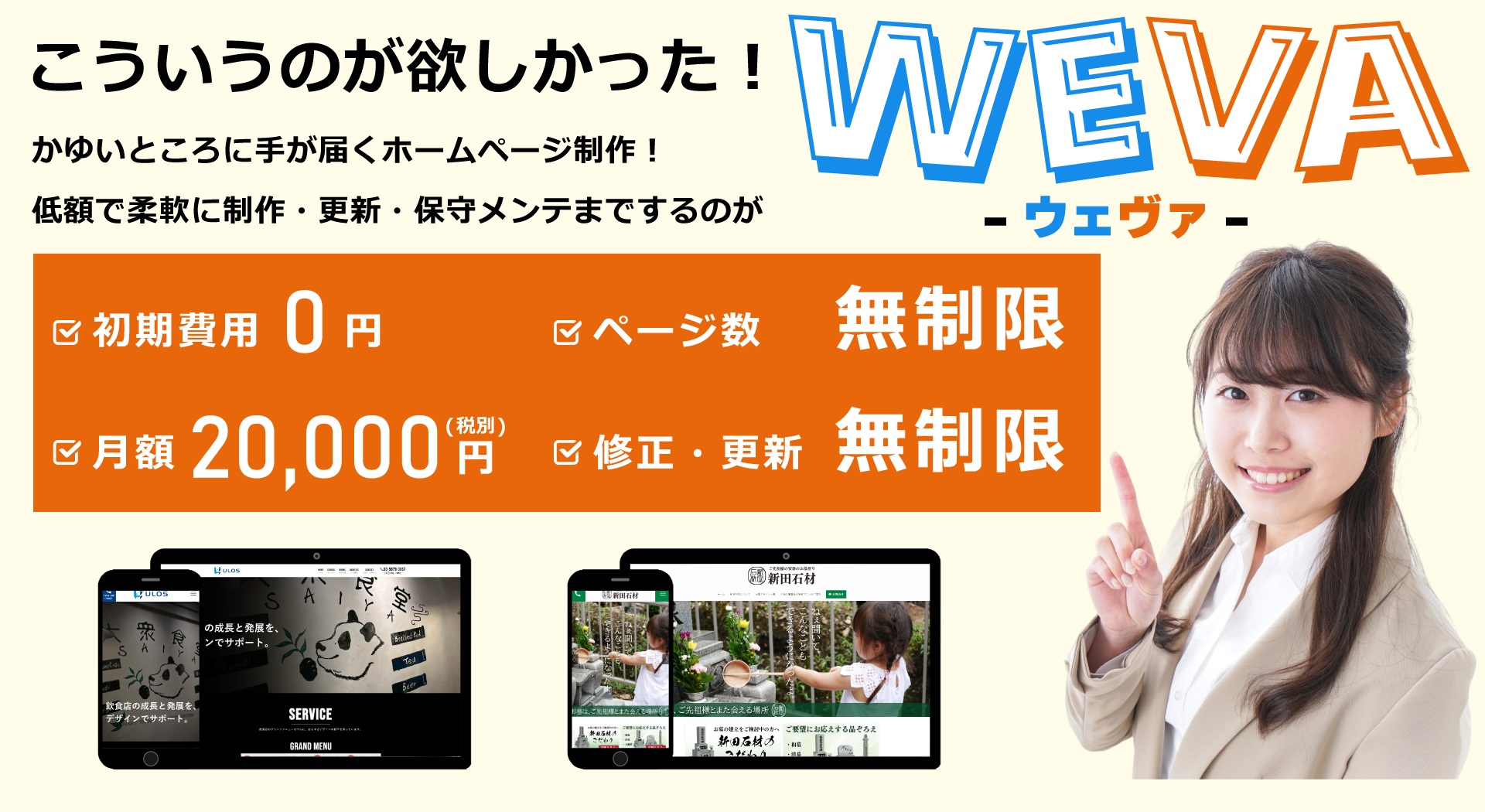 Wevaは「お客様に満足いただけるホームページを驚きの低価格で提供する」をコンセプトにサービス提供を始めました。